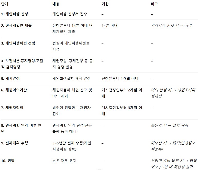 이 제도는 무담보채무는 10억 원 이하, 담보부채무는 15억 원 이하의 개인 채무자를 대상으로 하며, 채무자가 3년(특정 사유 시 5년) 동안 정해진 금액을 성실히 변제하면 잔여 채무에 대한 면제를 받을 수 있습니다.